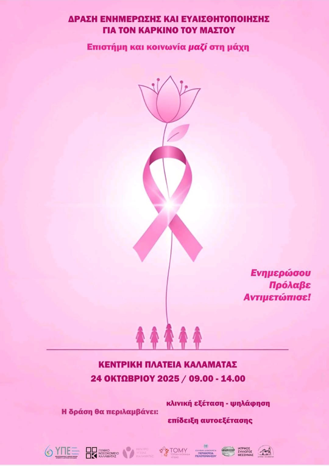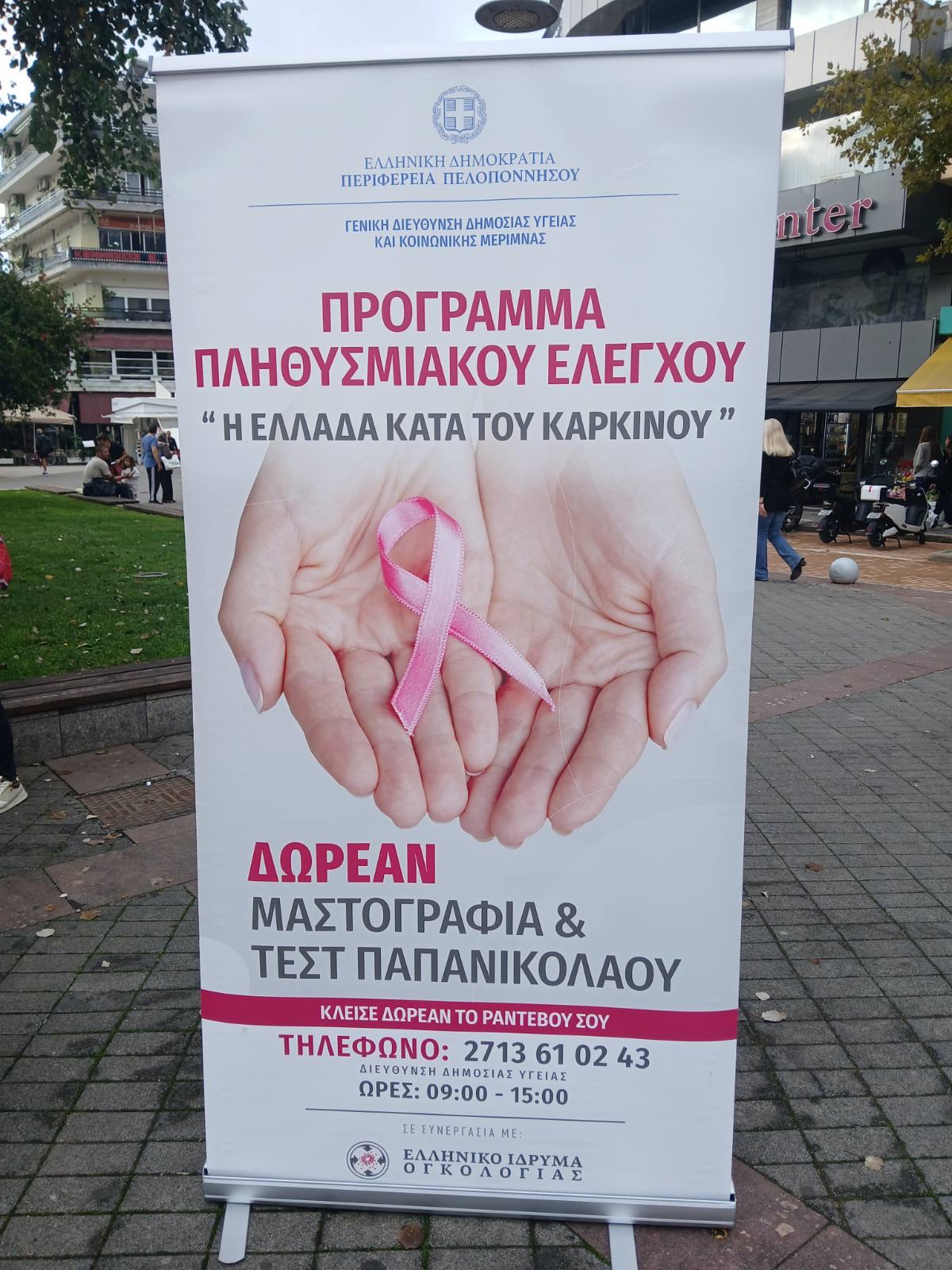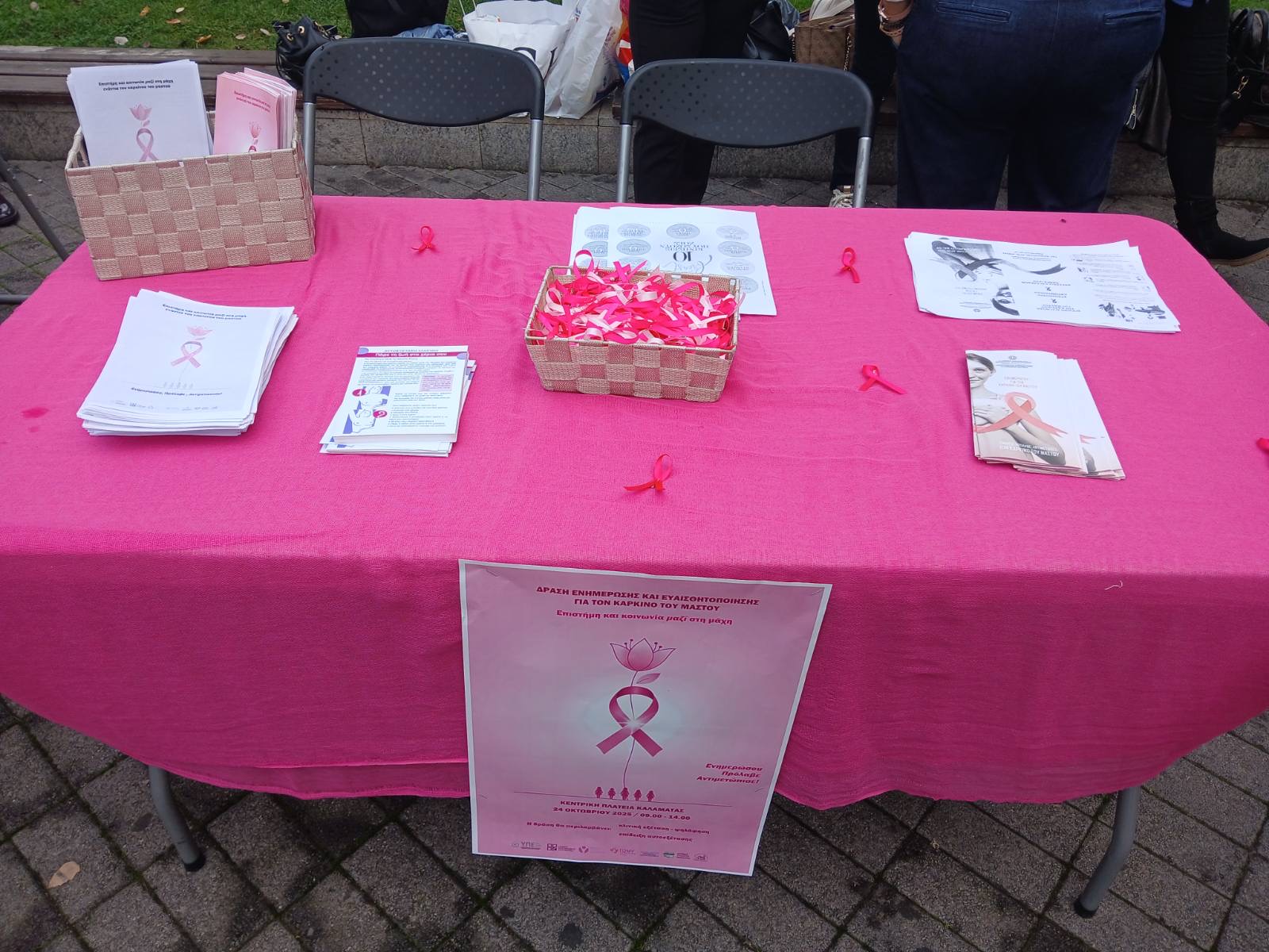 Με αφορμή την Παγκόσμια Ημέρα Κατά του Καρκίνου του Μαστού, πραγματοποιήθηκε στην Κεντρική Πλατεία, Βασιλέως Γεωργίου στην Καλαμάτα, εκδήλωση – δράση ενημέρωσης και ευαισθητοποίησης του κοινού.