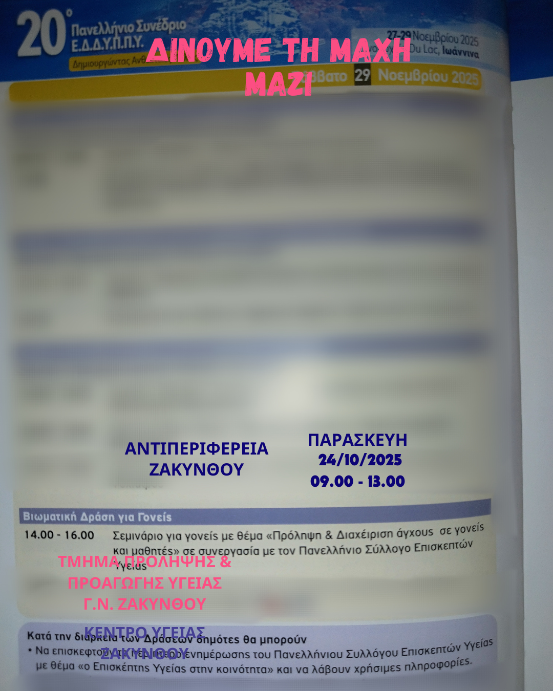 Με μεγάλη επιτυχία ολοκληρώθηκαν οι εργασίες του 20ου Πανελληνίου Συνεδρίου του ΕΔΔΥΠΠΥ, με τον Πανελλήνιο Σύλλογο Επισκεπτών Υγείας Ν.Π.Δ.Δ. (Π.Σ.Ε.Υ.) να έχει δυναμική και ουσιαστική παρουσία μέσα από δράσεις αγωγής υγείας για γονείς και παιδιά.